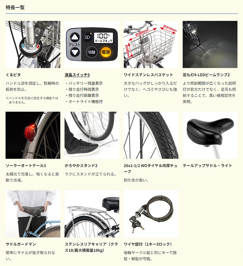 | 施錠方式後輪 | 後輪サークル錠・ワイヤ錠 |