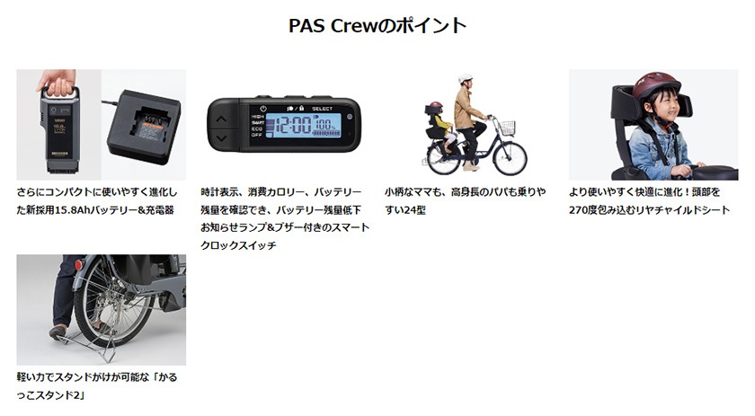YAMAHA「PAS Crew」は夫婦で共用しやすい24インチのロングライフモデルです。