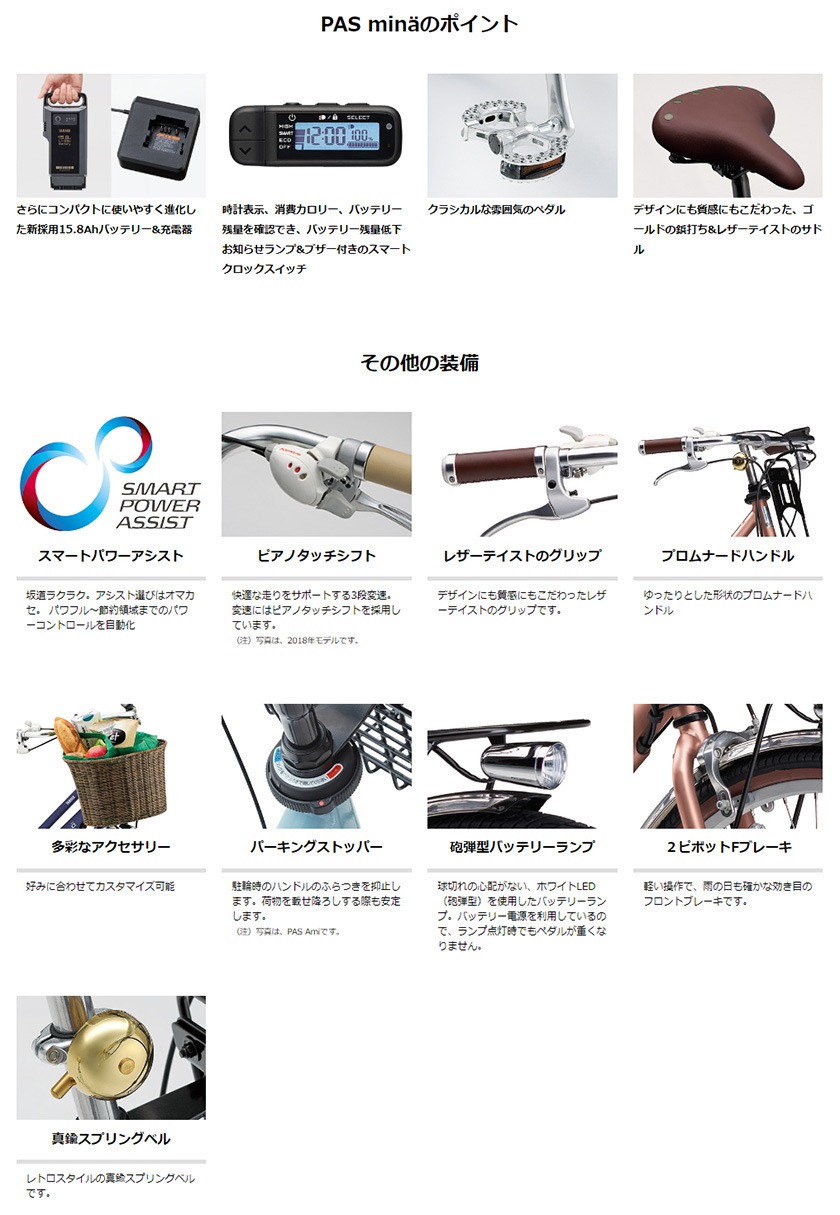 YAMAHA「PAS mina」は、カスタマイズも楽しめる北欧テイストのファッショナブルモデルです。