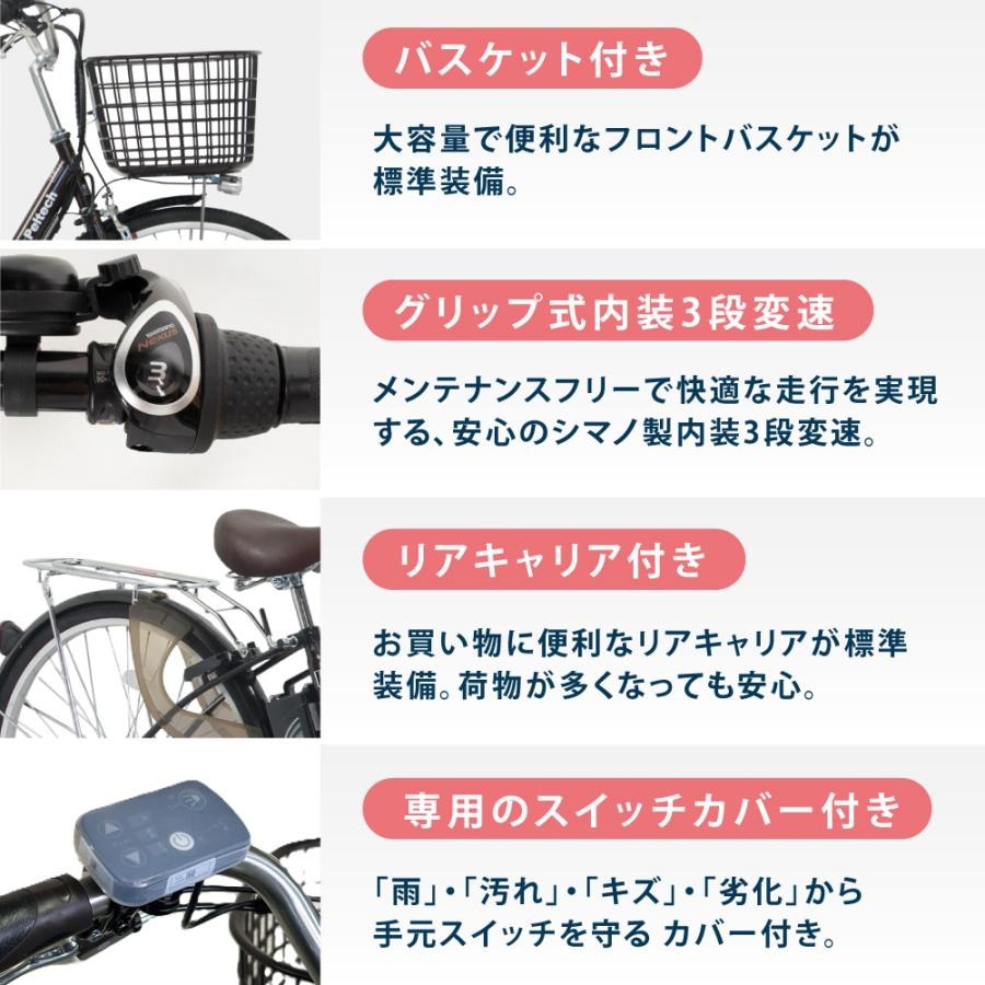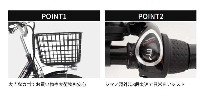 電動アシスト3モードの他、シマノ内装3段変速も装備の電動自転車です。