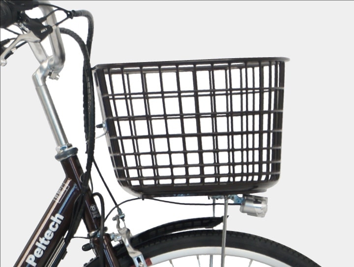 お買い物や通勤通学にも便利な前カゴ、駐輪時の施錠が容易な後輪錠、フロントLEDオートライト、クラス25リアキャリア、衣類の巻き込み防止になるドレスガードを装備。