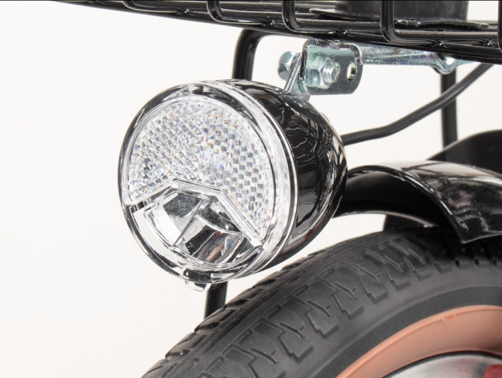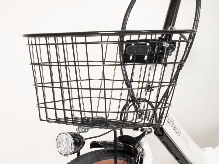 お買い物や通勤通学にも便利な前カゴ、駐輪時の施錠が容易な後輪錠、フロントLEDライト、シマノ製外装6段変速を装備。