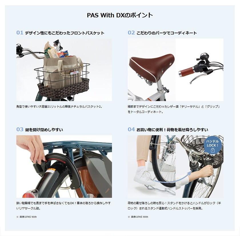 YAMAHA「PAS With DX」は、細部までデザインにこだわったファッショナブルモデルです。
