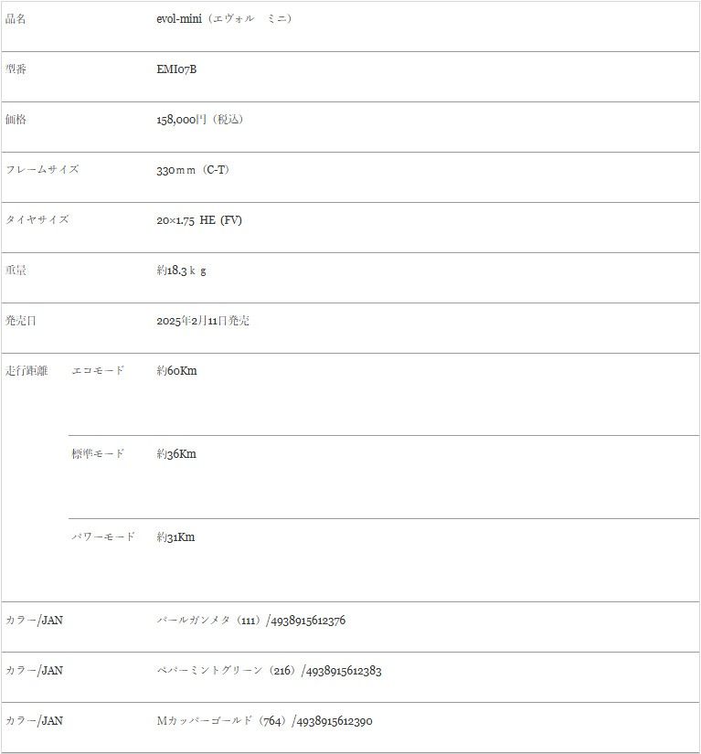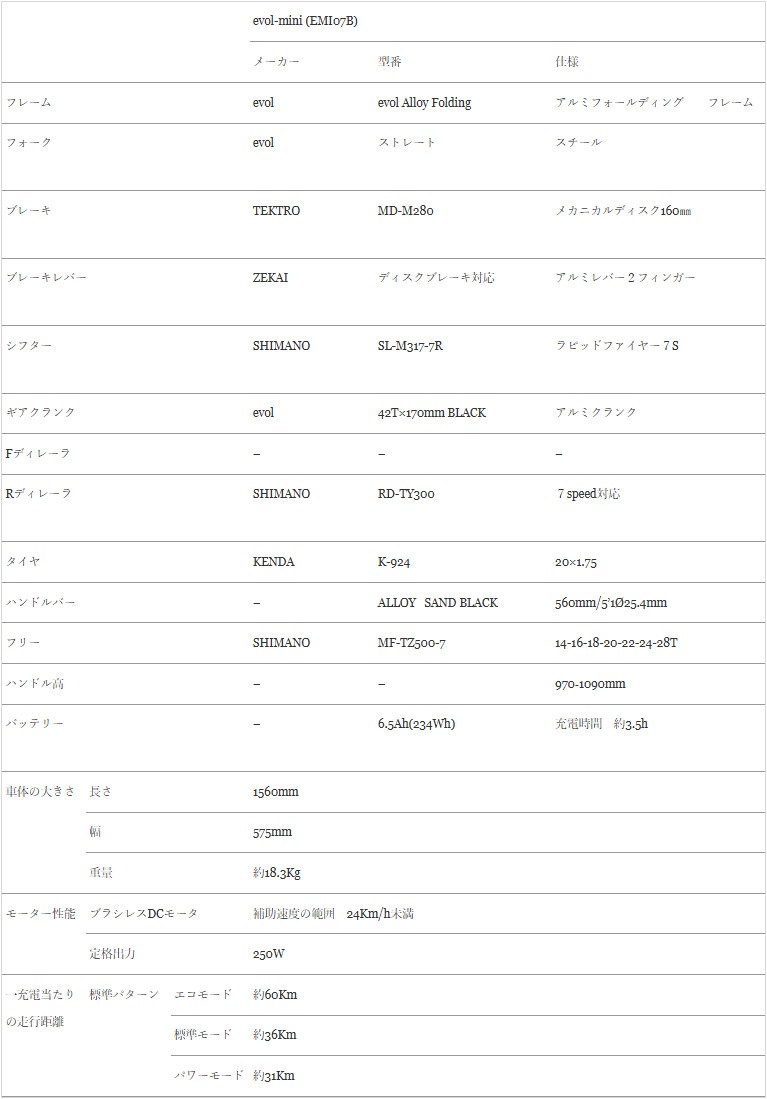 | 走行距離 | エコモード:約60Km 標準モード:約36Km パワーモード:約31Km |