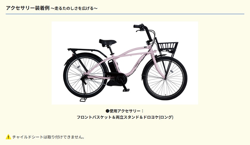 オプションでバスケットが装着可能。最大積載量3kg。