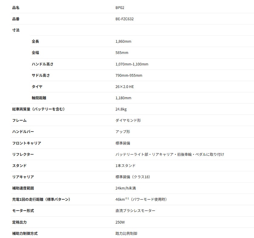 Panasonic パナソニック 電動自転車 26インチ BP02 2025年モデル BE-FZC632