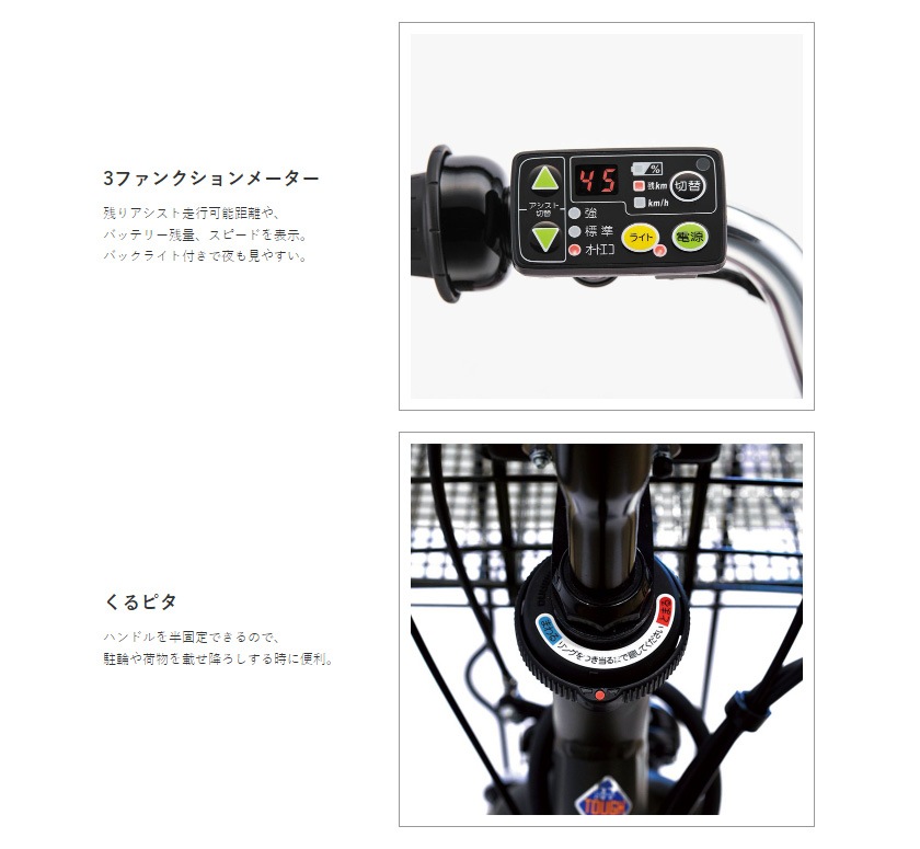 | 走行距離 | オートエコモードプラス:約52km 標準モード:約36km 強モード:約30km |