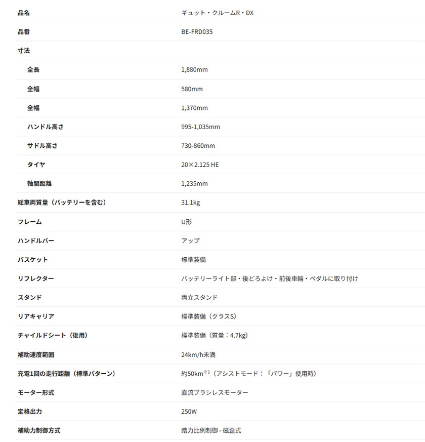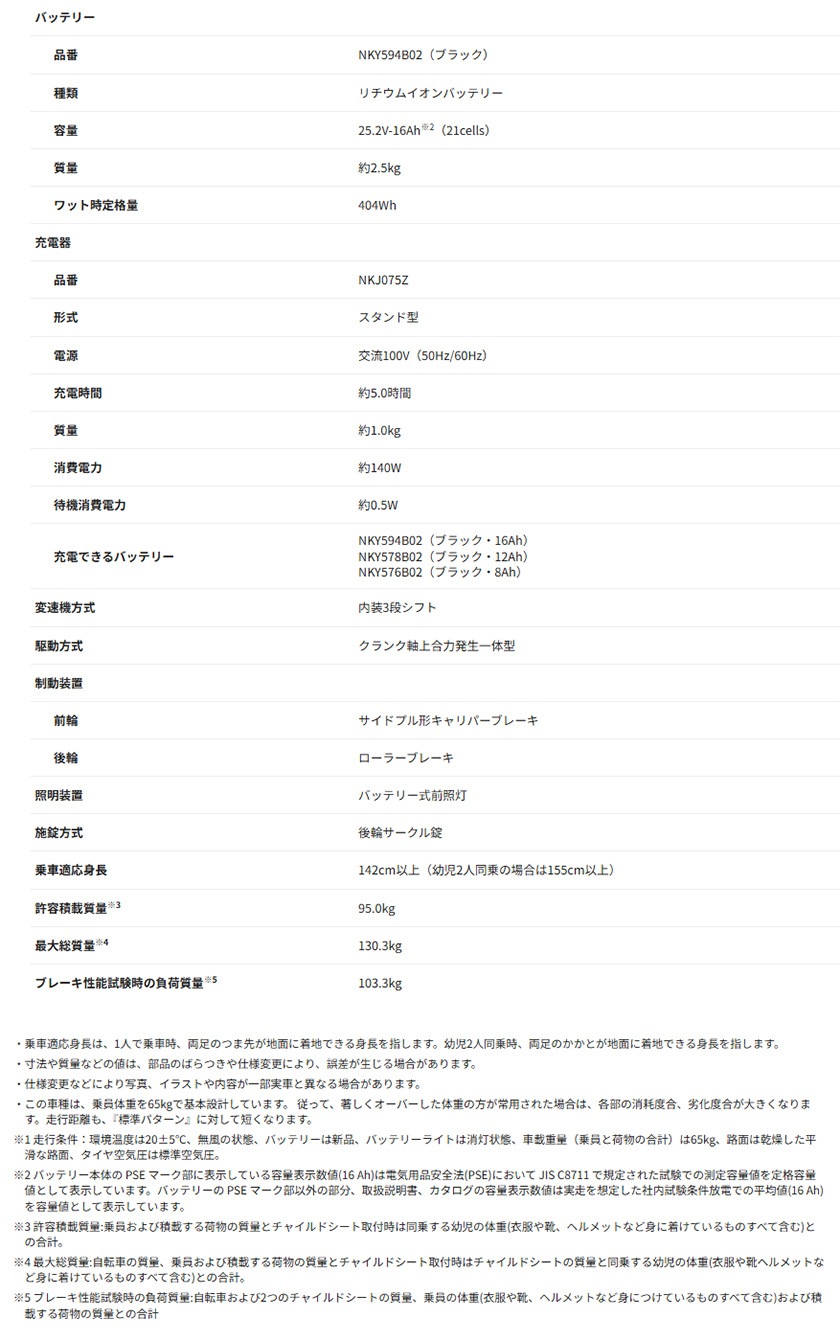 | 最大総質量(自転車+乗員+荷物) | 130.3kg |