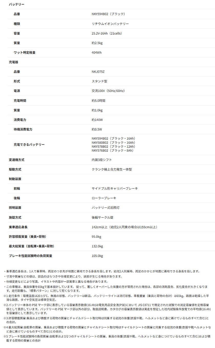 | バッテリー | NKY594B02(ブラック) |