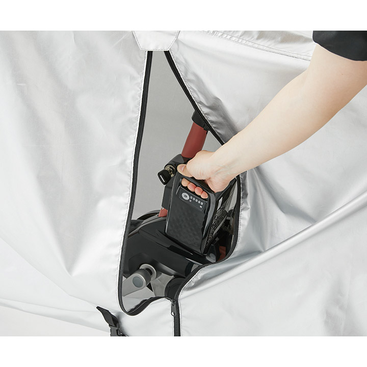 カバーを被せたままバッテリー脱着可能な開閉ファスナーを採用!